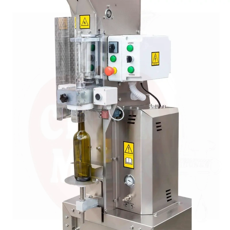 Egenskaper: AISI 304 (18/10) rostfritt stål-konstruktion, rostfria stålblock, kväveinsprutningsenhet, vakuumpump, kompatibel med agglomererade och syntetiska korkar 22-26mm diameter och upp till 50mm höjd.