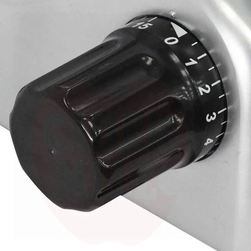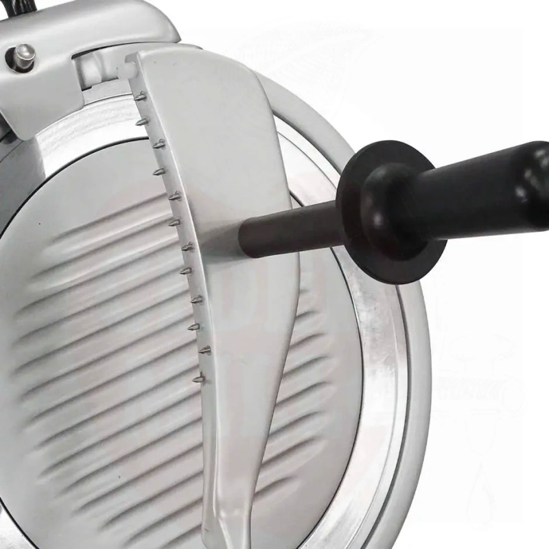 Användning: Professionell skärmaskin för exakt och jämn skärning av stora charkuterier, ost, bröd och fisk. Idealisk för gastronomi- och livsmedelssektorns yrkesverksamma.