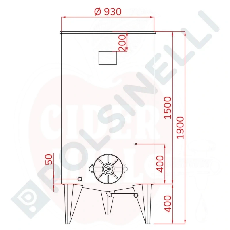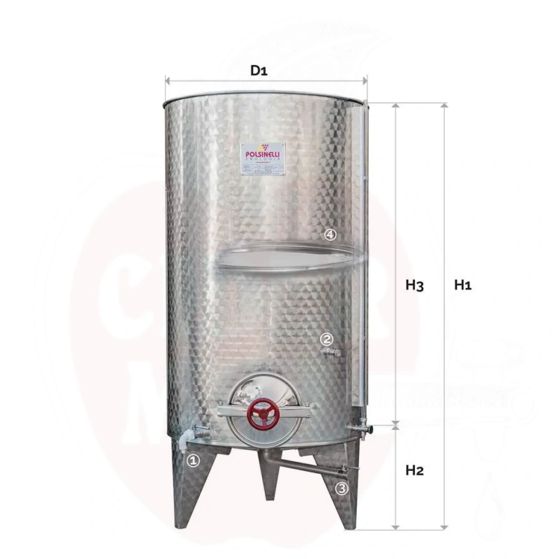 Behållare 1000L konbotten med luftflytlock och ∅300 manlucka rostfritt stål
